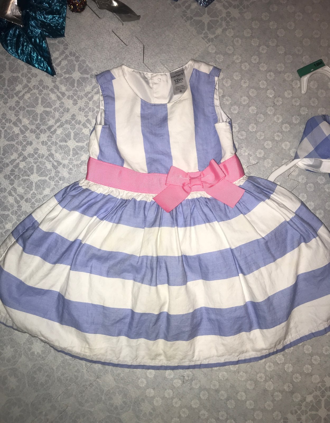 2 dresses: 12m carters (like new) and 18m carters NWT dresses. 12-18m light grey old