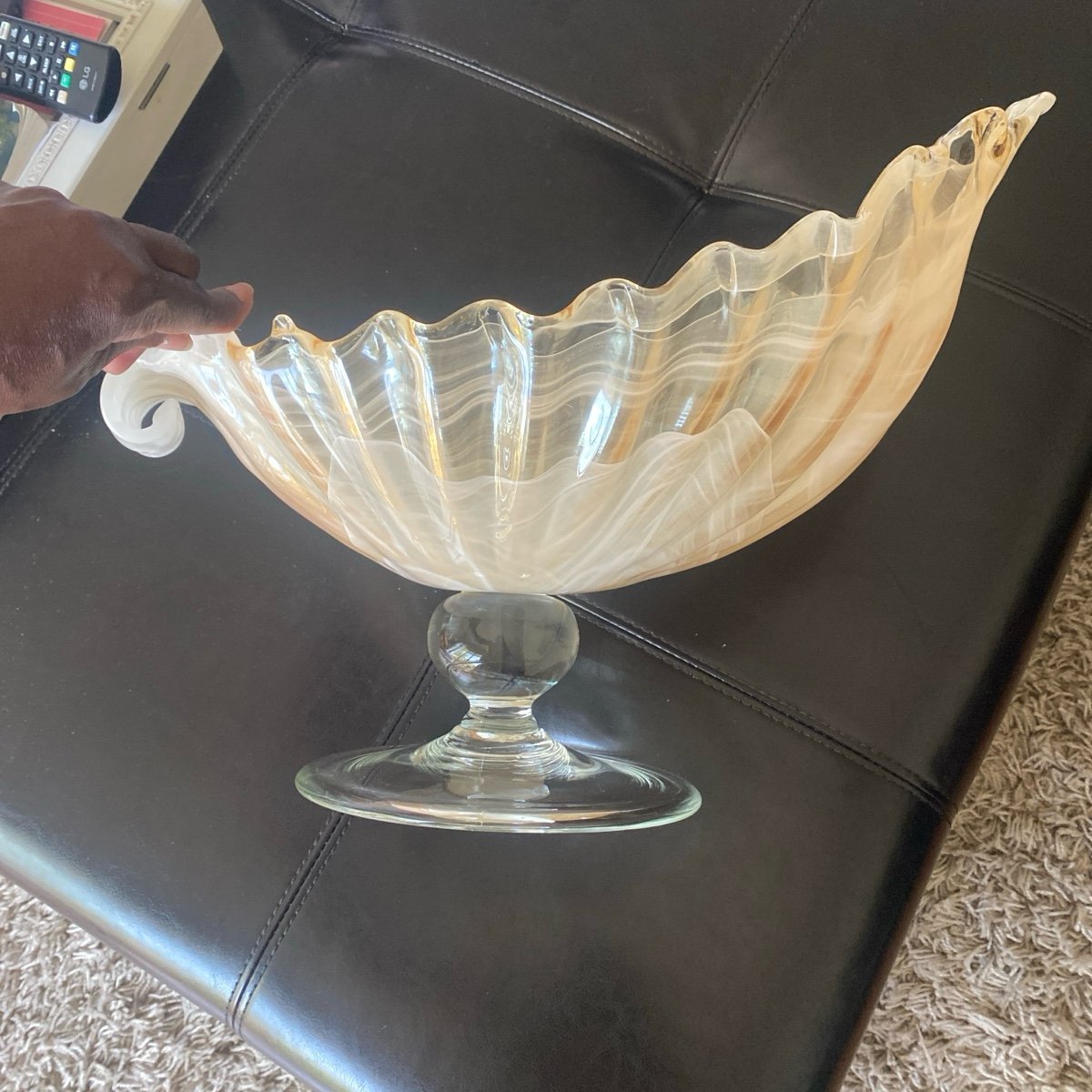 Gorgeous Sea Shell Shape Murano Style Pedestal Fruit Bowl/Centerpiece by Lavorazione Arte, Italy.